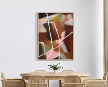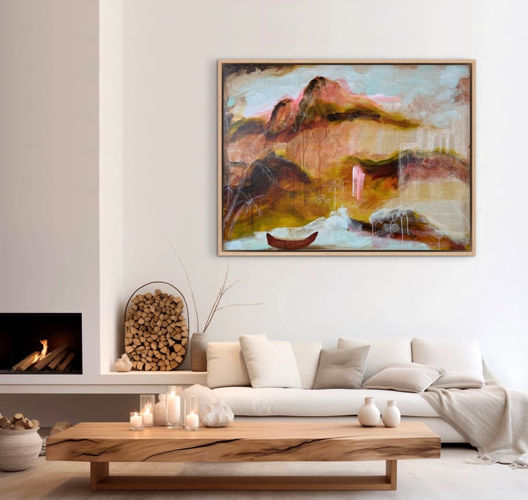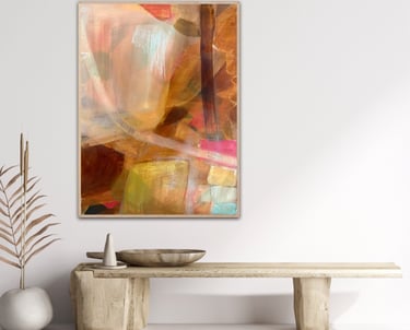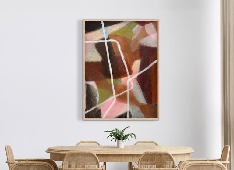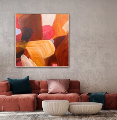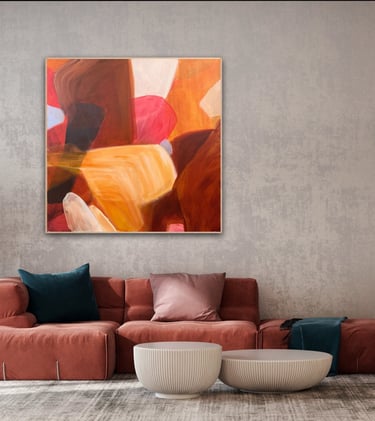 Her paintings are recognised for their transparent layering, bold yet considered mark-making, and nuanced use of colour. Each piece holds a balance of energy and stillness, inviting reflection while encouraging an intimate connection between artwork and viewer. With over 30 years’ experience as a fashion designer, interior stylist, and design director, Feauina’s creative instinct is long-held, her artistic language shaped by a lifelong immersion in form, texture, colour, and spatial storytelling.